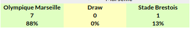 - Marseille home form, They have won five matches, drawn four and lost four.