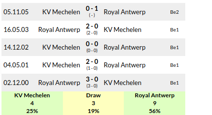 Mechelen Vs Antwerp Head-to-Head (H2H)