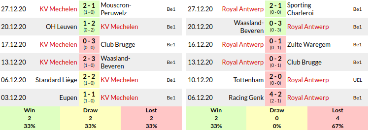 - Mechelen won back to back games before the winter break to halt their winless run of five matches, which had seen them lose three and draw two.