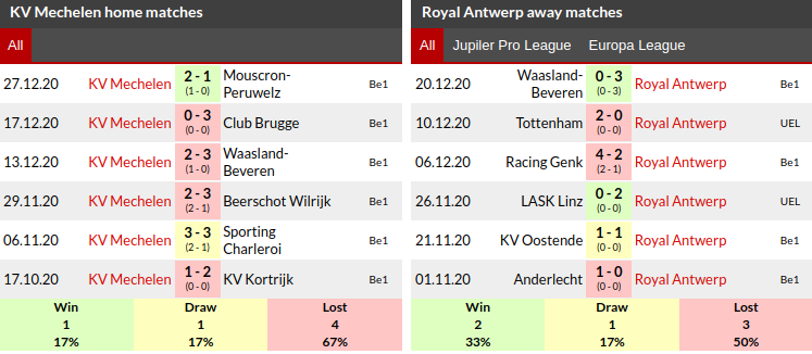 Mechelen vs Royal Antwerp Prediction: Home/Away Matches