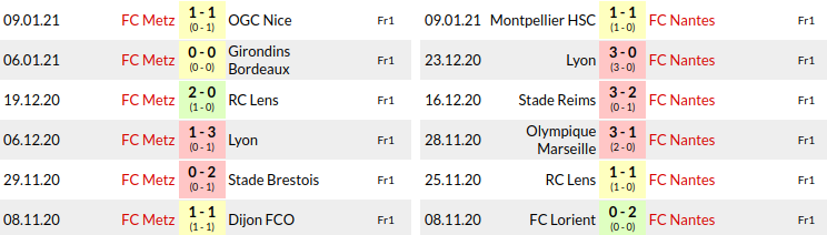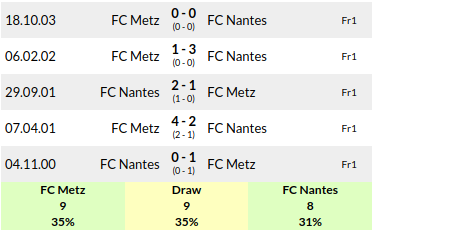 Metz vs Nantes: H2H