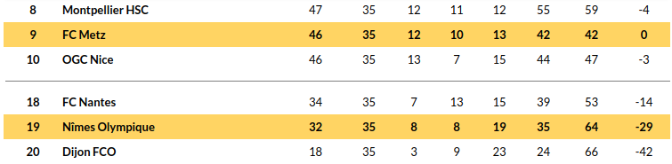 - Despite the bad spell, Metz are still in the top half of the table with European football out of their reach.