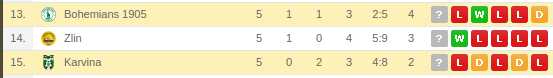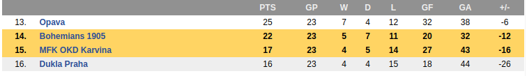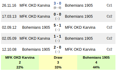 MFK Karvina Vs Bohemians 1905 Prediction: Standing