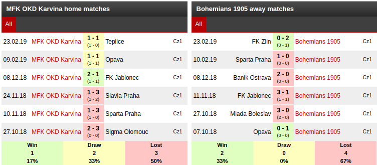 MFK Karvina Vs Bohemians 1905 Prediction: Home/Away Matches