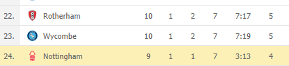 - On the road, Nottingham have lost a whooping 7 matches from 9 played managing just 1 win in the process