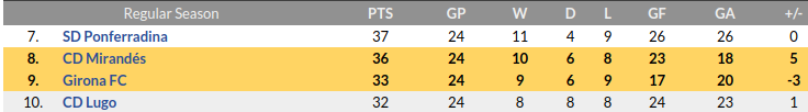 - Mirandes have won three straight games in the league to enhance their chances of finishing in the top six for a playoff place.