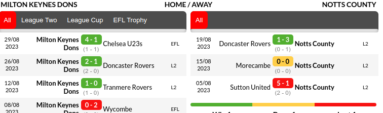 In previous League Two meeting, MK Dons emerged triumphant with a 2-1 win at Meadow Lane in April 2019.