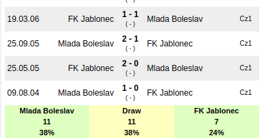 Mlada Boleslav vs Baumit Jablonec Prediction: Head to head