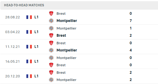 - Meanwhile, Brest are also on 20 points, but they hold a better goal difference and sit just above Montpellier. In their last match, they earned a draw against the strong team Lens with a 1-1 score.