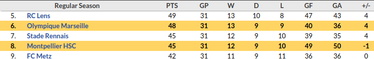Montpellier vs Marseille Prediction: Standing