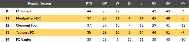 - Despite holding a comfortable nine-point cushion above the relegation zone, Toulouse still needs to secure their survival with the unique four-team relegation zone in effect this season.