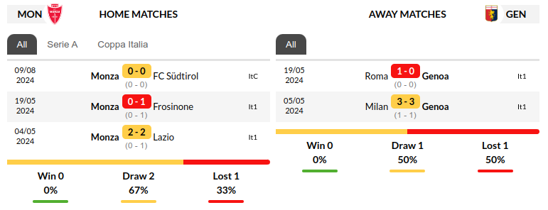 This match promises to be a competitive encounter, with both teams aiming to secure a positive result. Monza’s home advantage and Genoa’s recent performances could be key factors in determining the outcome.