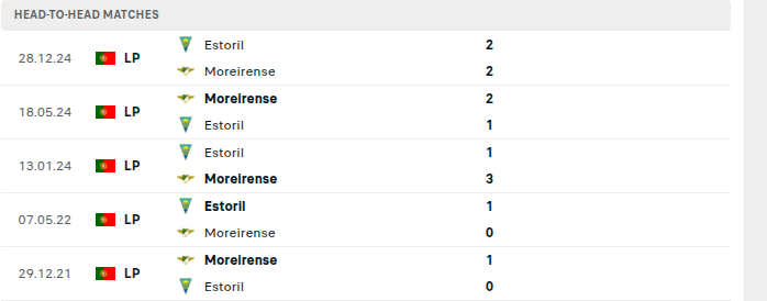 Estoril sit in ninth place on 42 points, while Moreirense are placed 11th on 36 points.