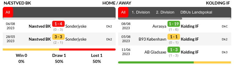 Their inaugural away match resulted in a 1-1 draw, which marked the end of their previously unblemished record. Kolding has emerged victorious in three out of the last five encounters in this fixture.