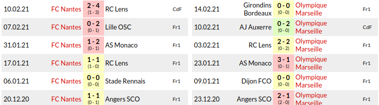- At home, Nantes have won two of the 12 matches played drawing six and losing four.