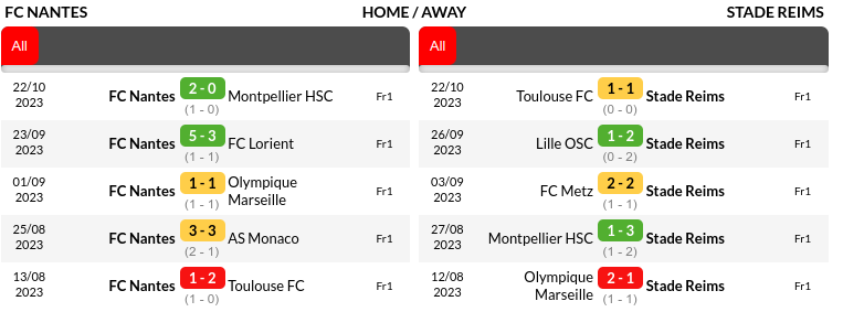 In their last Ligue 1 encounter, Reims emerged victorious, defeating Nantes 3-0 at Stade de la Beaujoire – Louis Fonteneau in the previous season.