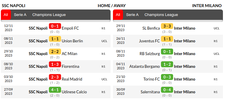 Achieving consecutive SA wins over Inter Milan, like they did last season with a 3-1 victory, is the immediate target for Napoli. Stadio Diego Armando Maradona provides the ideal setting for this feat, as Napoli has lost only one of their last 17 home top-flight head-to-heads against Inter Milan (W10, D6). However, a five-game winless run at home (D2, L3), including a surprising loss to Empoli in their recent match, remains a concern.