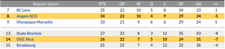 - On the road, Angers have won five of the 12 travels, AWAY record, 5W-3D-4L.