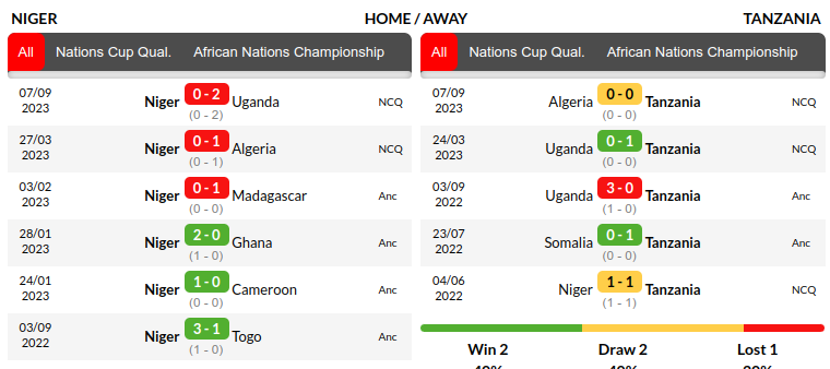Niger and Tanzania face off for the third time, having drawn 1-1 in June 2022 and Tanzania winning 1-0 a year later.