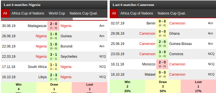 Nigeria Vs Cameroon Prediction: Standing