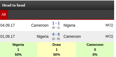 Nigeria vs Cameroon: Head to head