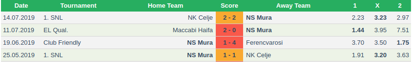 - Following a 2-0 loss to Macciba Haifa in first leg of the Europa league, Mura were held on a 2-2 draw by Celje in the round one of the Slovenia Prva Liga.