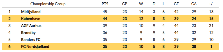 Nordsjaelland vs Copenhagen Prediction: Standing