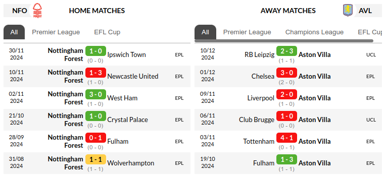 The head-to-head record favors Villa, despite their recent struggles in away matches. However, Forest’s home advantage and determination to secure a victory could make this match competitive.