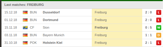 - Freiburg is with one victory, two draws and four defeats in their already seven on the road games played so far.