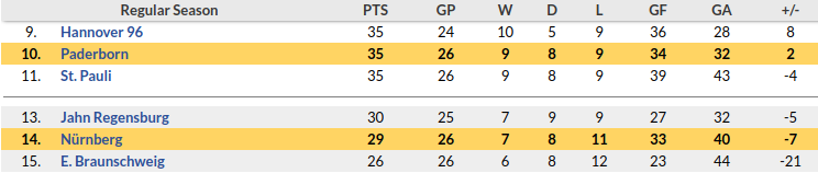 Nurnberg vs Paderborn Prediction: Standing