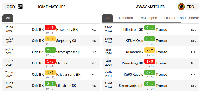 The head-to-head record favors Tromsø, who have dominated their recent encounters against Odd. However, Odd’s home advantage and their determination to improve their league position could make this match a competitive affair.