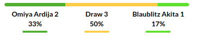 • However, the most recent encounter between the two sides resulted in a 2-1 win for Blaublitz. Omiya Ardija will be aiming for redemption and to level the playing field.