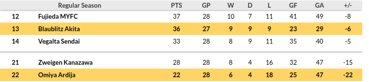 Omiya vs Blaublitz Akita Prediction: Standing