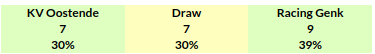 Oostende have enjoyed their home form and will fancy their chances against a struggling Genk on the road.