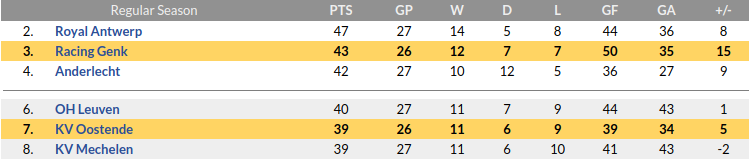 - Oostende were knocked out of the Belgian Cup and have won two of their last five matches.