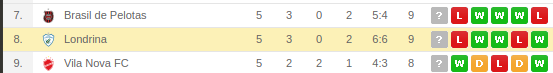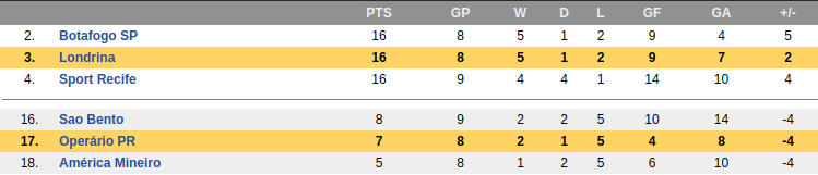 - Londrina are setting their eyes to move up on the table as they currently stand at position three with sixteen points.