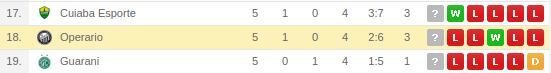 - Operario are having a hard time in the Brazil Serie B as they sit in the relegation zone with seven points.