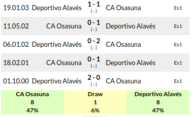 Osasuna Vs Alaves Predictions: Last Six Matches