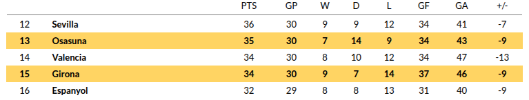 - Ante Budimir (Osasuna’s 15-goal top scorer) has netted braces against Girona in their last two home meetings
