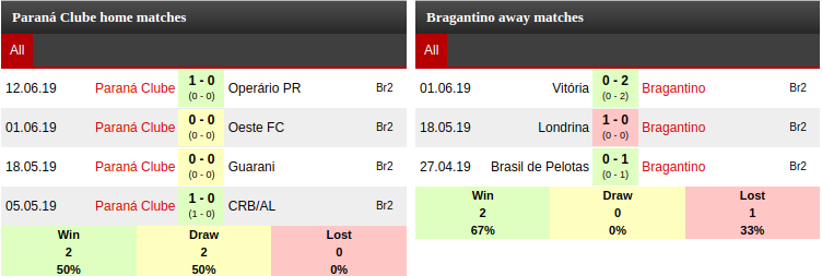 Parana Pr vs Bragantino: Head to head