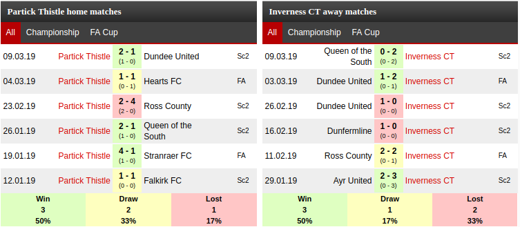 Partick Thisle Vs Inverness Prediction: Home/Away