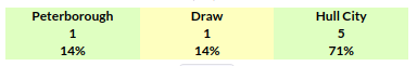 - Petersborough will count on their home form to trouble the in-form Hull City having only lost one of the 15 played with 12 wins and two draws.