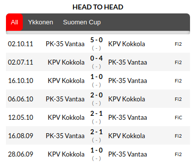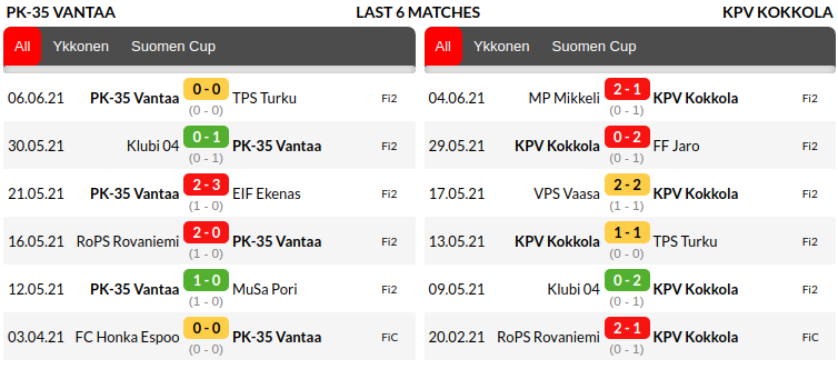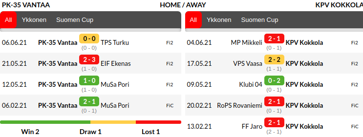 PK-35 vs KPV Kokkola: Home/Away Matches