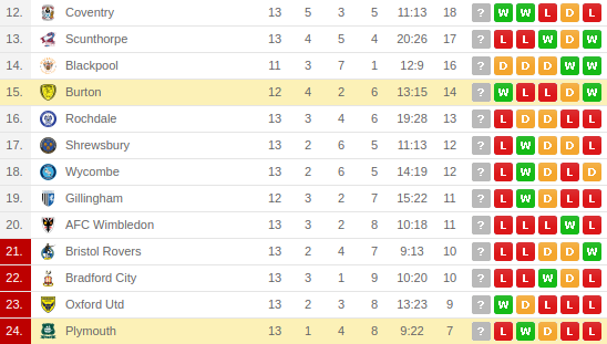 - The basement side were fighting for promotion last season but find themselves with just one win from their opening 13 fixtures.