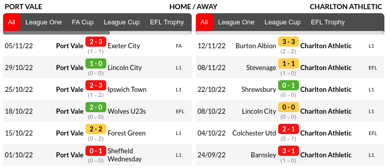 - In the last five meetings, Charlton have two wins while Port Vale have one, the last two meetings ended in a stalemate.
