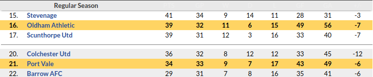 Port Vale vs Oldham Predictions: Standing