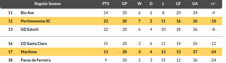 - Marítimo, on the other hand, suffered their third consecutive loss in their last league match against Sporting Braga, leaving them in 17th place with 13 points and eight points adrift of safety.