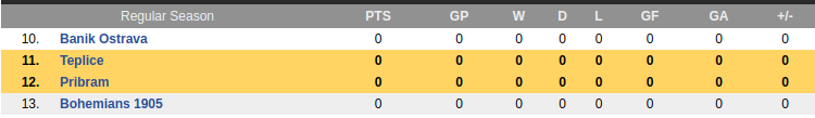 - Pribram finished at position fourteen on the table with thirty one points but survived relegation as they beat Brno in the relegation final.