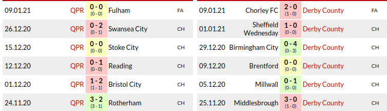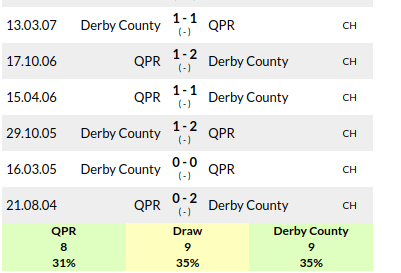 QPR vs Derby: H2H
