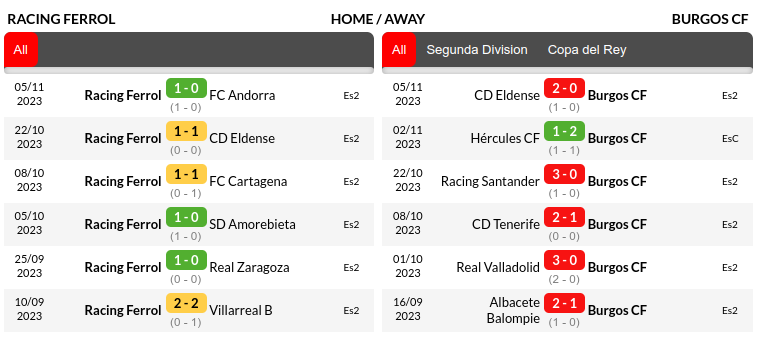 The last meeting between these teams saw Burgos emerge victorious with a 2-1 scoreline in their Primera División RFEF match in March 2017.